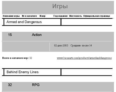 В данном отчете представлена информация по играм, имеющимся в БД, а также присутствует вычисляемое поле (Всего в каталоге игр).