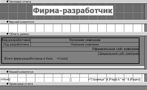А так выглядит отчет по фирмам-разработчикам в режиме конструктора.