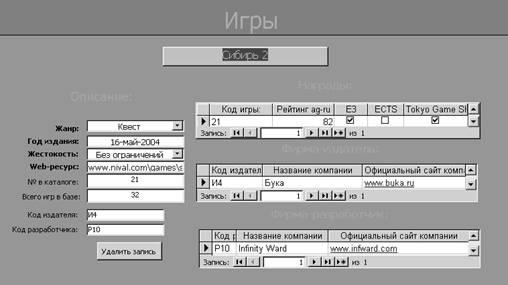 В данной форме имеются 3 вложенные формы, а также вычисляемое поле "Всего игр в базе".