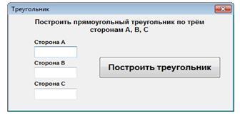2.1 Программа «Треугольники» определяет, может ли быть построен прямоугольный треугольник по заданным длинам сторон а,