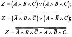 Схема НЕ (інвертор) реалізує операцію заперечення. Зв'язок між входом x цієї схеми і виходом z можна записати співвідношенням z =, x де читається як "не x" або "інверсія х".