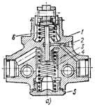 а - основний насос, що подає; б - ручний насос, що підкачує; І - корпус; 2 - дренажний канал; 3 і ІІ - поршні; 4 - возпратная пружина поршня; 5 - пробка; 6 - шток; 7 і 13 - клапани; 8 і 12 - пружини; 9 - рукоятка; 10 - цнлиндр ручного насоса