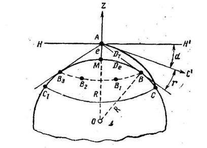 Рис. 1. Видимый горизонт наблюдателя