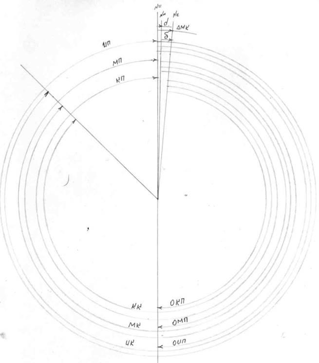 По заданным значениям магнитного курса, маг-нитного склонения , девиации магнитного компаса и курсового угла определить:DМК , ИК, КК , КП. по формулам и графически