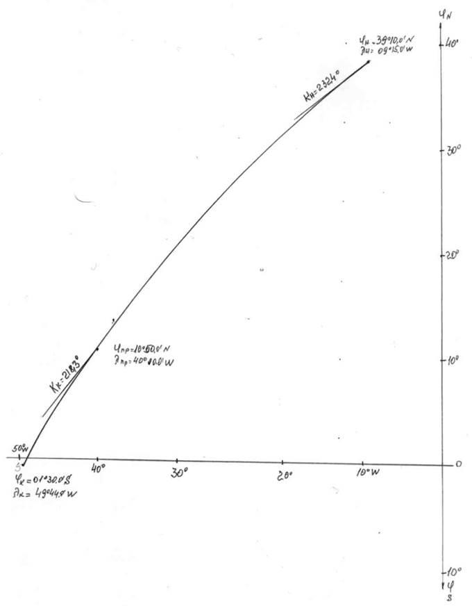 Рассчитываем длину локсодромии S
