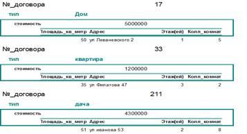 Рисунок 16 (результат запроса «имущество за риелтором»)