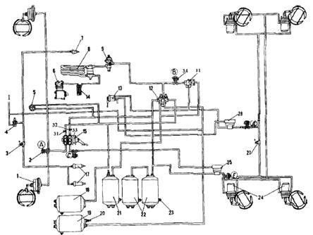 Рис. 1.2 Схема пневматического привода тормозных механизмов автомобилей КамАЗ-53228