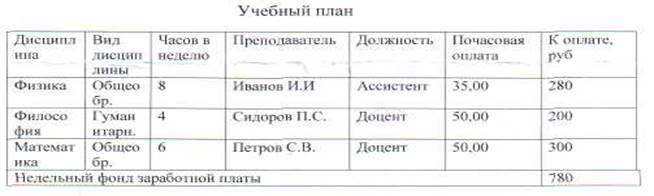 Таким образом, имеем нормализованную реляционную базу данных, в которой очень легко производить изменения. Так, например, если некий преподаватель уволился и вместо него пришел другой преподаватель и взял на себя все те же самые его часы, то достаточно (если нет необходимости в сохранении записей уволенного преподавателя) изменить имя ушедшего преподавателя на имя нового. Изменение названия специальности (например, если «Госуправление» переименуют в «Муниципальное управление») не отразится на связях в таблице, изменится лишь название специальности в таблице SPEC. Изменение наименования дисциплины, либо изменение ее вида опять же не приводит к существенным изменениям. Централизованное повышение почасовой ставки сразу всем сотрудникам, занимающим одну должность, производится через таблицу DOLJNOST. Используя таблицу PLAN мы можем очень быстро (и не затрагивая содержимого остальных таблиц) изменить учебный план, добавить новые часы, удалить исключенные из плана занятия, сменить преподавателя, изменить число часов.
