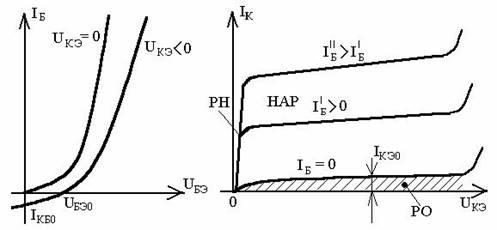 Семейство выходных характеристик схемы с общим эмиттером представляет собой зависимости IК = f(UКЭ) при заданном параметре IБ (рисунок 2,б).