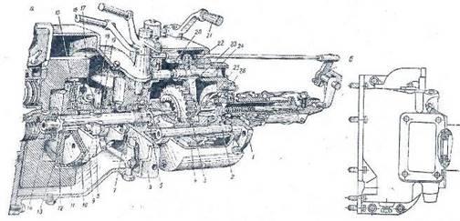 (рис. 3) состоит из двух чугунных половин, соединенных болтами. К передней части картера через плиту 20