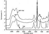 Об образовании водородных связей между двумя полимерами можно судить по изменению ИК-спектров бинарной композиции (рис. 4). В области 1000 — 1500 см-1