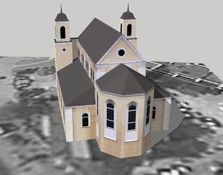 С изображений были убраны лишние фрагменты, детали, заслоняющие фасады (провода, ветви, забор, троллейбус), была повышена цветовая насыщенность и контрастность материалов, так как в Google Earth текстуры отображаются с пониженной светлотой. Боковые стены выступающей алтарной части отрисованы из имеющихся фрагментов.