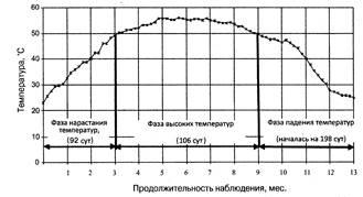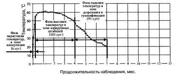 Компостирование нефтешламов по классической схеме сопровождается последовательной сменой температурных фаз.