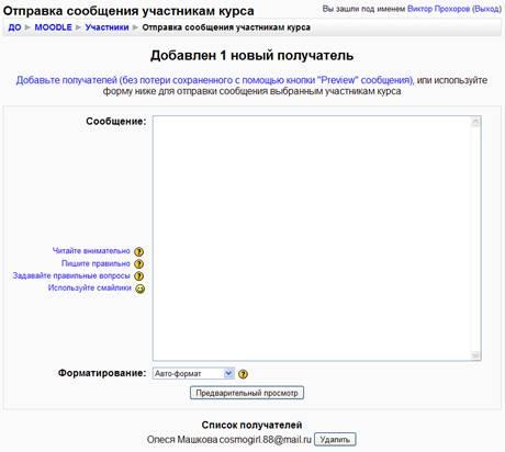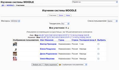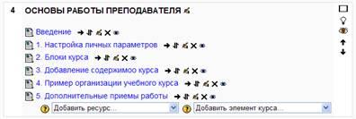 Предположим, что администратор системы создал новый обучающий курс "Изучение системы MOODLE" и предоставил вам права преподавателя на данный курс.
