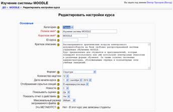 Рисунок 2.124 – Окно Редактирования настроек курса. Основные настройки
