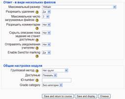 Результаты выполненной лабораторной работы должны быть оформлены в виде текста и файла, и затем отправлены преподавателю. Для этого добавлен элемент Задание (Отчет по лабораторной работе № 1). Элемент Задание предусматривает отправку файлов студентами для проверки. Преподаватель устанавливает дату и время начала и окончания срока сдачи готовых работ. По истечении заданного срока студент не может отправить файл на проверку. При получении файла от студента, преподаватель получит уведомление по электронной почте, в котором указывается имя, фамилия и наименование задания. Открыв ссылку элемента Задание, преподаватель имеет возможность скачать файлы учеников, дать письменные комментарии каждой работе и выставить оценки.