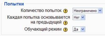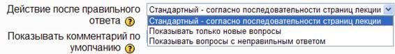 Тест. Этот элемент позволяет преподавателю создать набор тестовых вопросов. Все вопросы хранятся в базе данных и могут быть впоследствии использованы снова в этом же курсе (или в других). По результатам тестирования выставляется оценка (либо в автоматическом режиме, либо вручную). Тест может содержать различные типы вопросов (множественный выбор, верно/неверно, числовой и др).