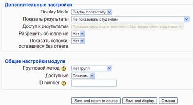 Когда все необходимые поля заполнены, нажмите кнопку Save and display, для сохранения изменений и просмотра результата. Или нажмите кнопку Отмена.