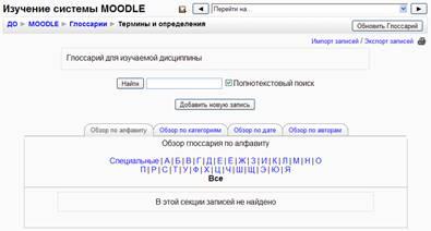 Рисунок 2.121 – Окно нового учебного курса "Изучение системы MOODLE"