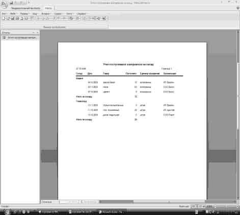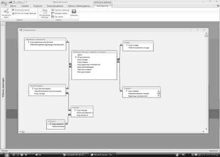 Таблица приход и расход материалов на складе в режиме конструктор.