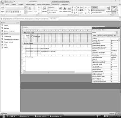 Таблица области в режиме конструктор