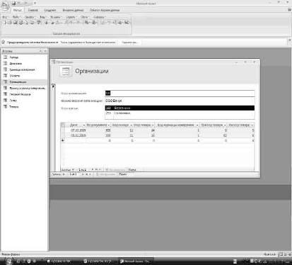 Таблица организации в режиме конструктор.