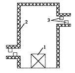 Рис. 5. Звукоізоляція кожухом 1 – джерело шуму; 2 – звукопоглинаючий матеріал; 3 – глушник шуму
