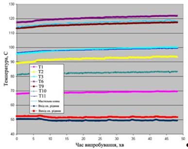 - визначення зміни температури в певних точках системи в залежності від температури охолоджувальної рідини і часу випробування.
