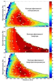 – Об’єднані контурні карти ефективності системи двигун-інвертор