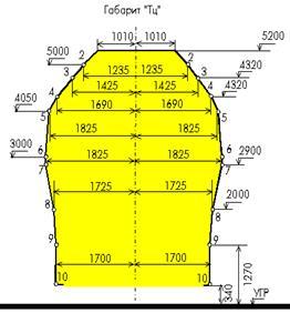 зона верхней негабаритности — на высоте от 4000 до 5300 мм.