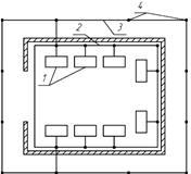 | 1 – устаткування, що заземляється; 2, 3 – заземляючі провідники (магістралі); 4 – заземлителі. |