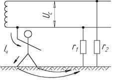 Розглянемо 2-х полюсне дотикання до однофазної мережі (рис. 2.)