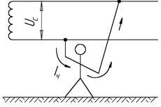 Розглянемо однополюсне доторкання до однофазної мережі змінного струму (рис. 1.).