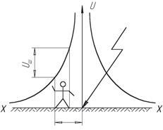 Рис.6. Схема розподілу потенціалів при кроковій напрузі.