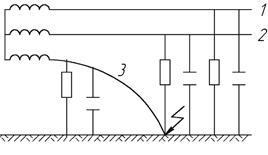 Рис. 8. Схема замикання фази на землю в мережі з ізольованою нейтраллю