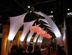 Особую роль играет внешняя подсветка выставочных помещений. Световая архитектура расширяет эмоциональные возможности выставочных ансамблей. Разделы выставки могут быть освещены лампами различных цветовых оттенков.