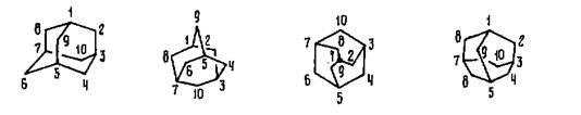 Таким образом, узловые атомы углерода – 1,3,5,7, а мостиковые – 2,4,6,8,9,10.