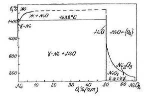 , что подтверждается диаграммой состояния Ni-O (см. рис.1.4.). Однако установлено, что в нормальных условиях и при повышенной температуре оксид NiO2