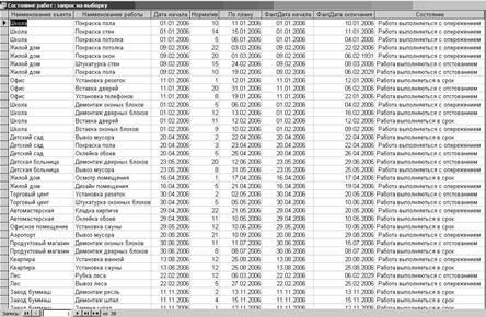 который будет использоваться в качестве титульной страницы: Выполнение работ на каждом объекте. Затем откроем запрос под именем Запрос Данных о работах