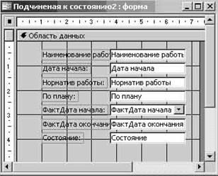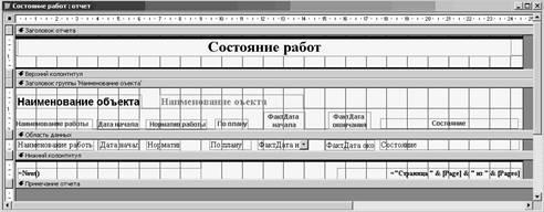 , возьмем из него поля Наименование объекта, Наименование работы, Дата начала, Норматив работы, По Плану, ФактДата начала, ФактДата окончании, Состояние.