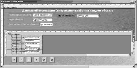 появиться форма, где будет показано отставание (опережение) работ на каждом объекте. При нажатии кнопки Заполнения базы данных