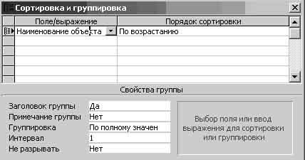 , указав порядок сортировки по возрастанию. В свойствах изменяем заголовок группы - да, примечание - да.
