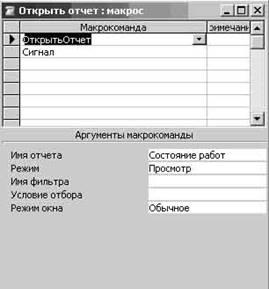 Рисунок 18. Структура макроса Открытие форму Состояние работ