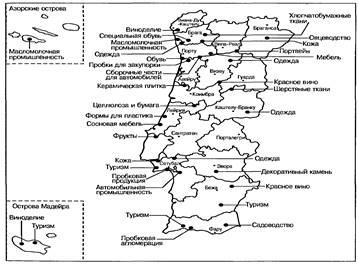 В работах Майкла Портера также приведена схема размещения основных региональных кластеров Португалии (рис. 2).