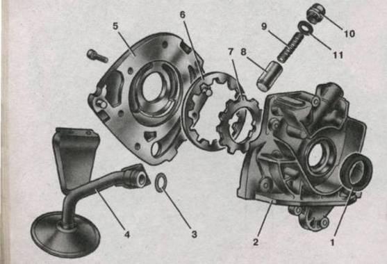 - отвернуть шесть винтов крепления крышки масляного насоса и снять крышку, ведущую и ведомую шестерни;