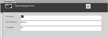 Создана в режиме Форма,добавлена кнопка перехода к Запросу по продажам.