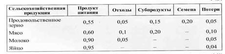 Таблица 3 Коэффициенты конверсии сельскохозяйственного сырья в конечные продукты