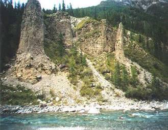 У подножия разрушающихся утёсов, отвалившиеся от них обломки накапливаются, образуя на склонах обширные осыпи