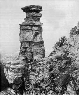 Скала Труба Дьявола в Великобритании — пример того, что обычно называют формами выветривания. Известняк подвергся воздействию морозного выветривания, а затем обломки были удалены, осталась часть, наименее затронутая выветриванием.