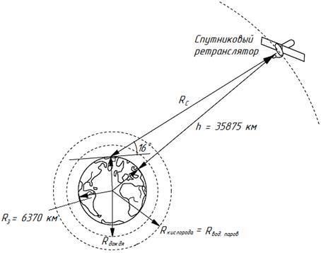 Орбита спутникового ретранслятора (СР) – геостационарная (ее высота над экватором Земли 35875 км)